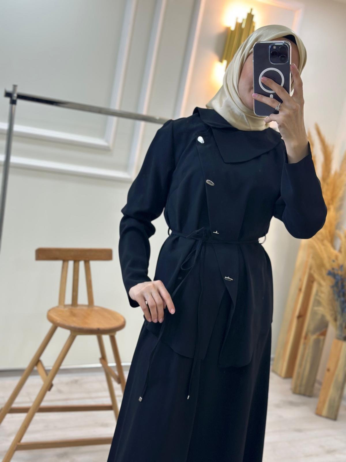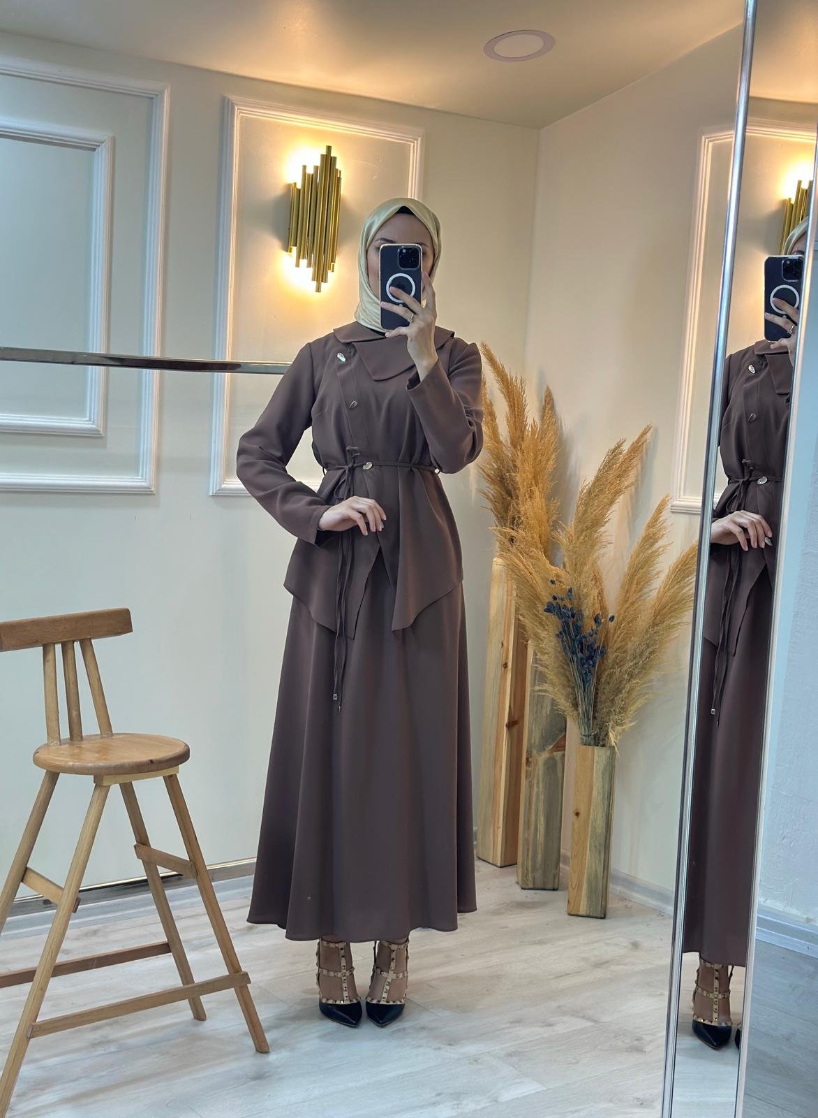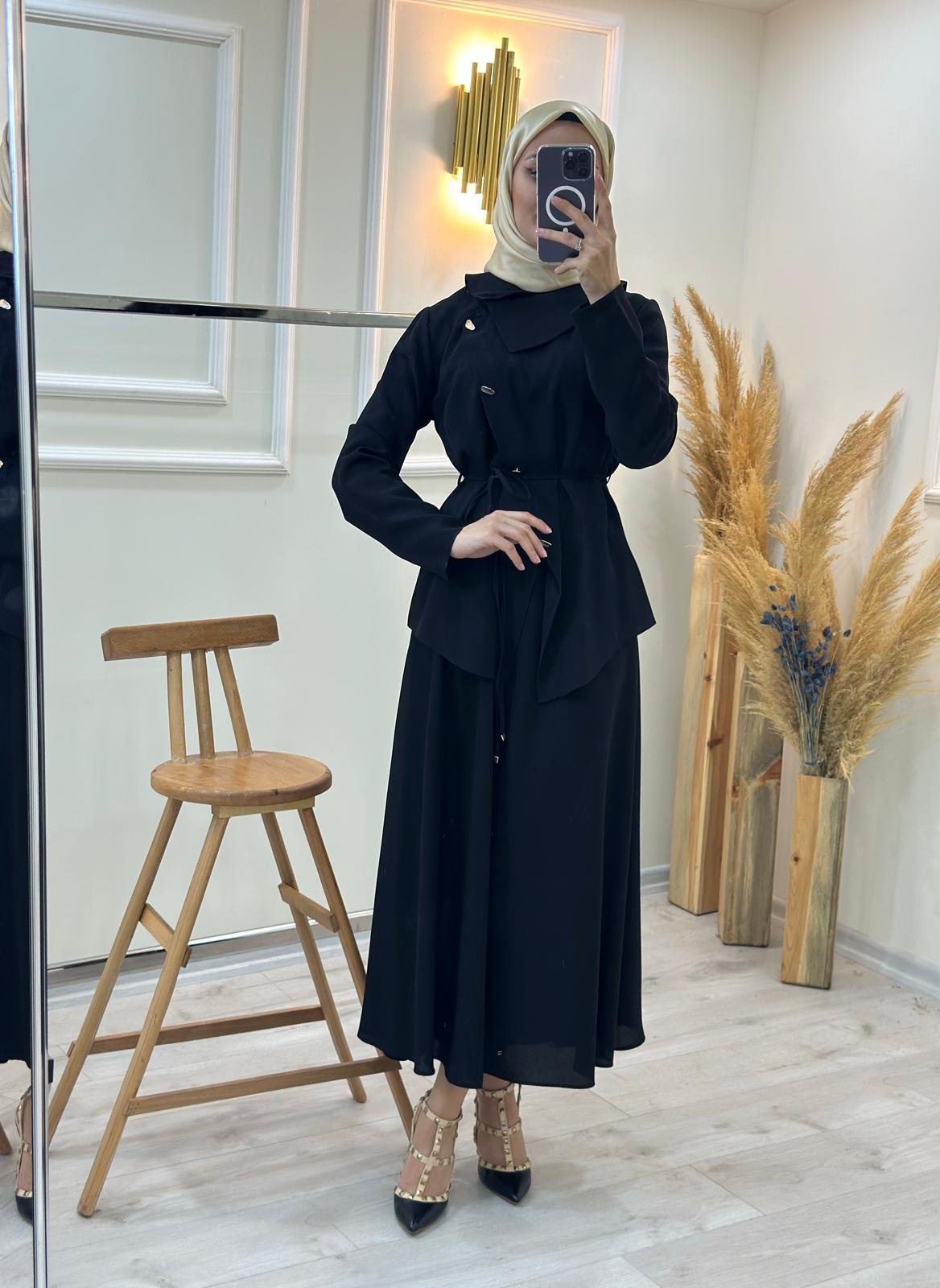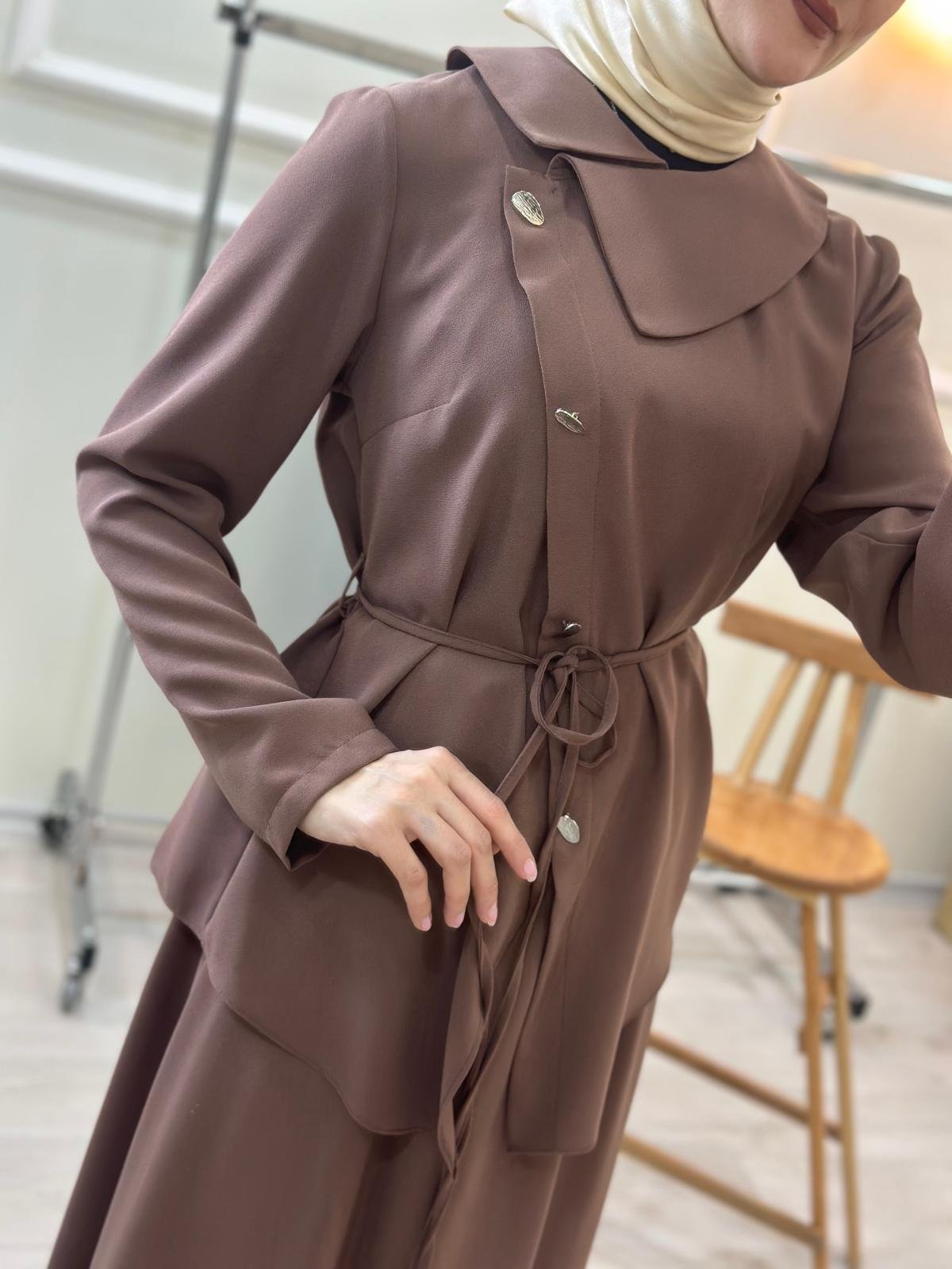 Bel Bağcıklı Düğme Detaylı Etekli Takım