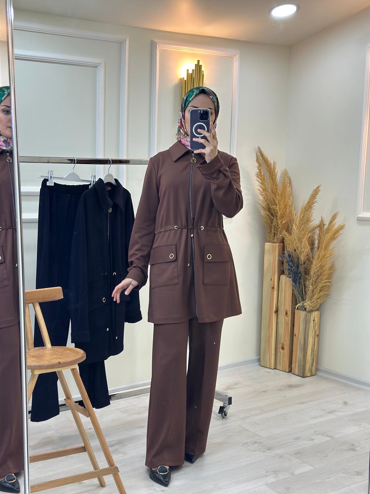 -10%Cep Detaylı Kuşaklı Pantolon Takım