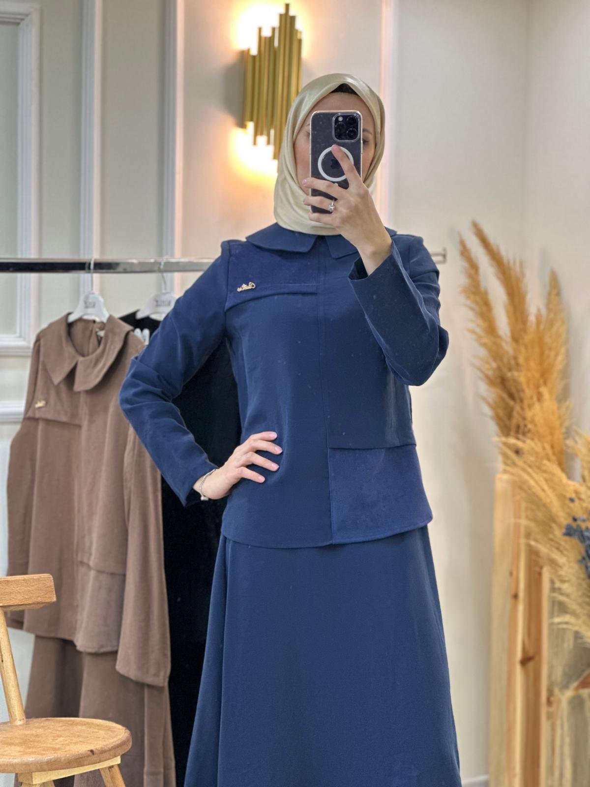 Bel Bağcıklı Düğme Detaylı Etekli Takım