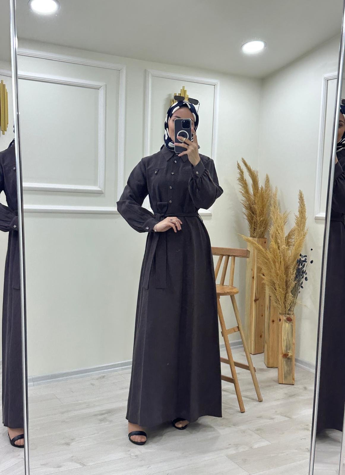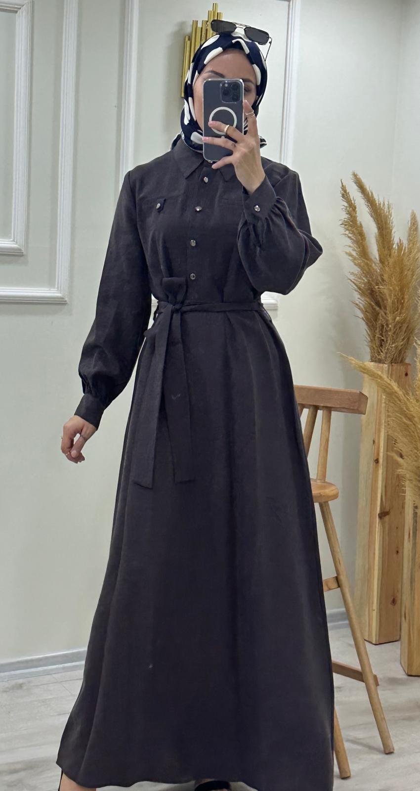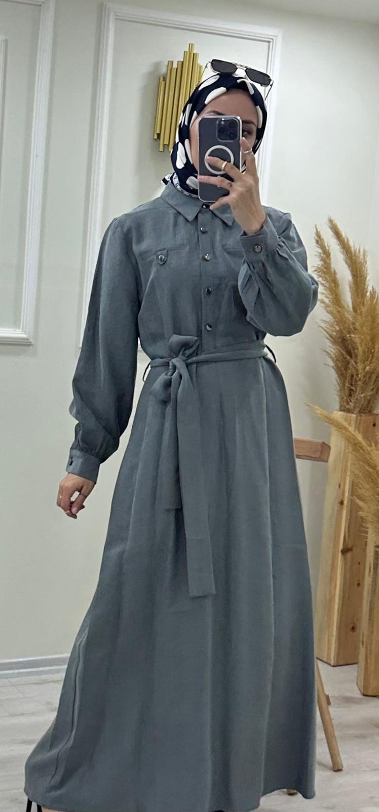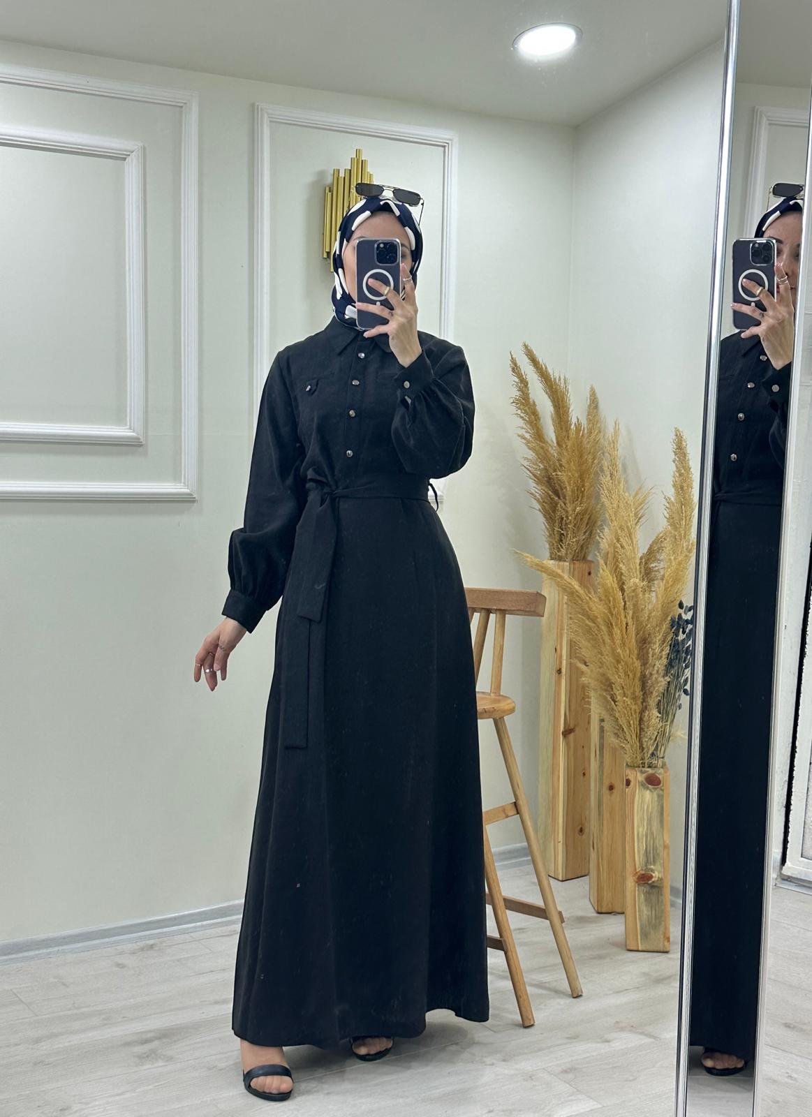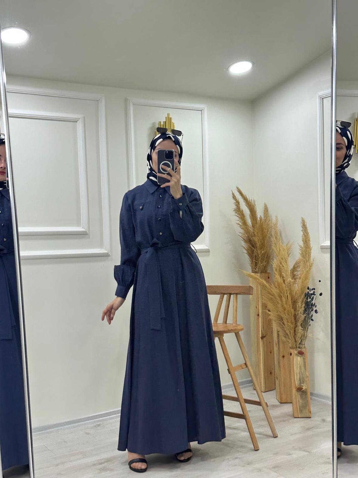 Düğme Detaylı Boydan Elbise