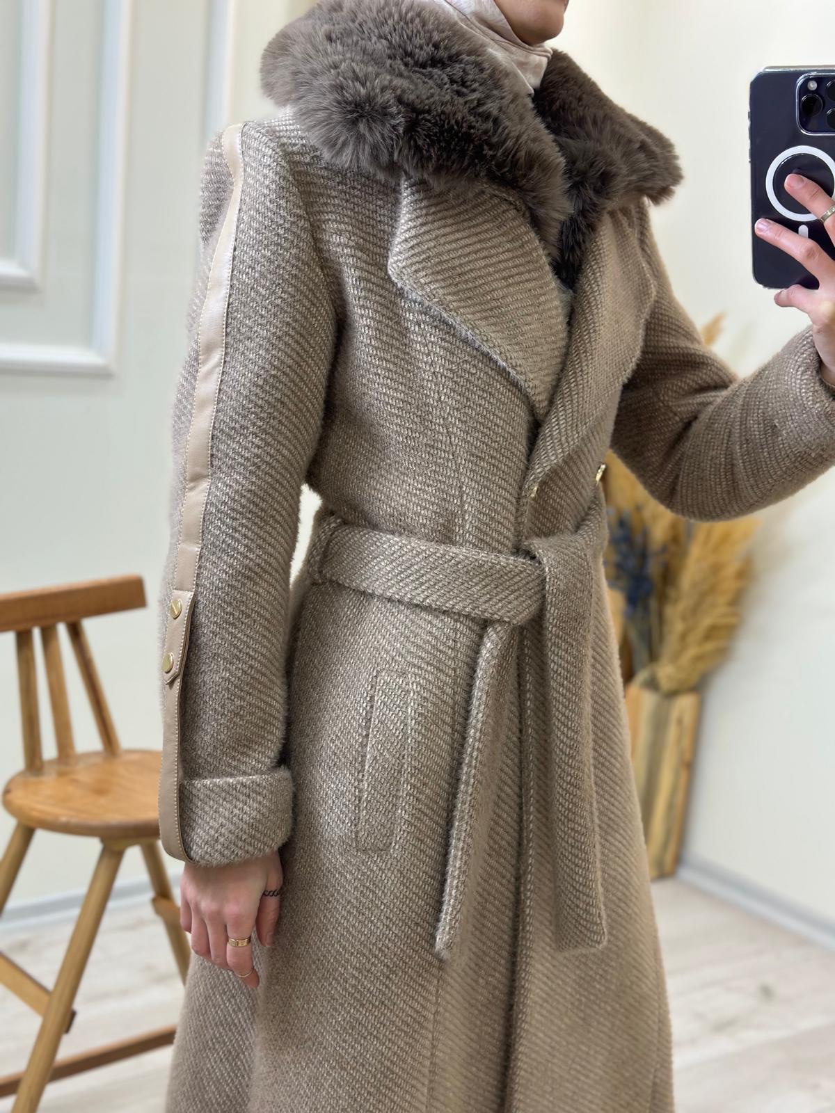 Kuşaklı Kürk Yaka Kaban