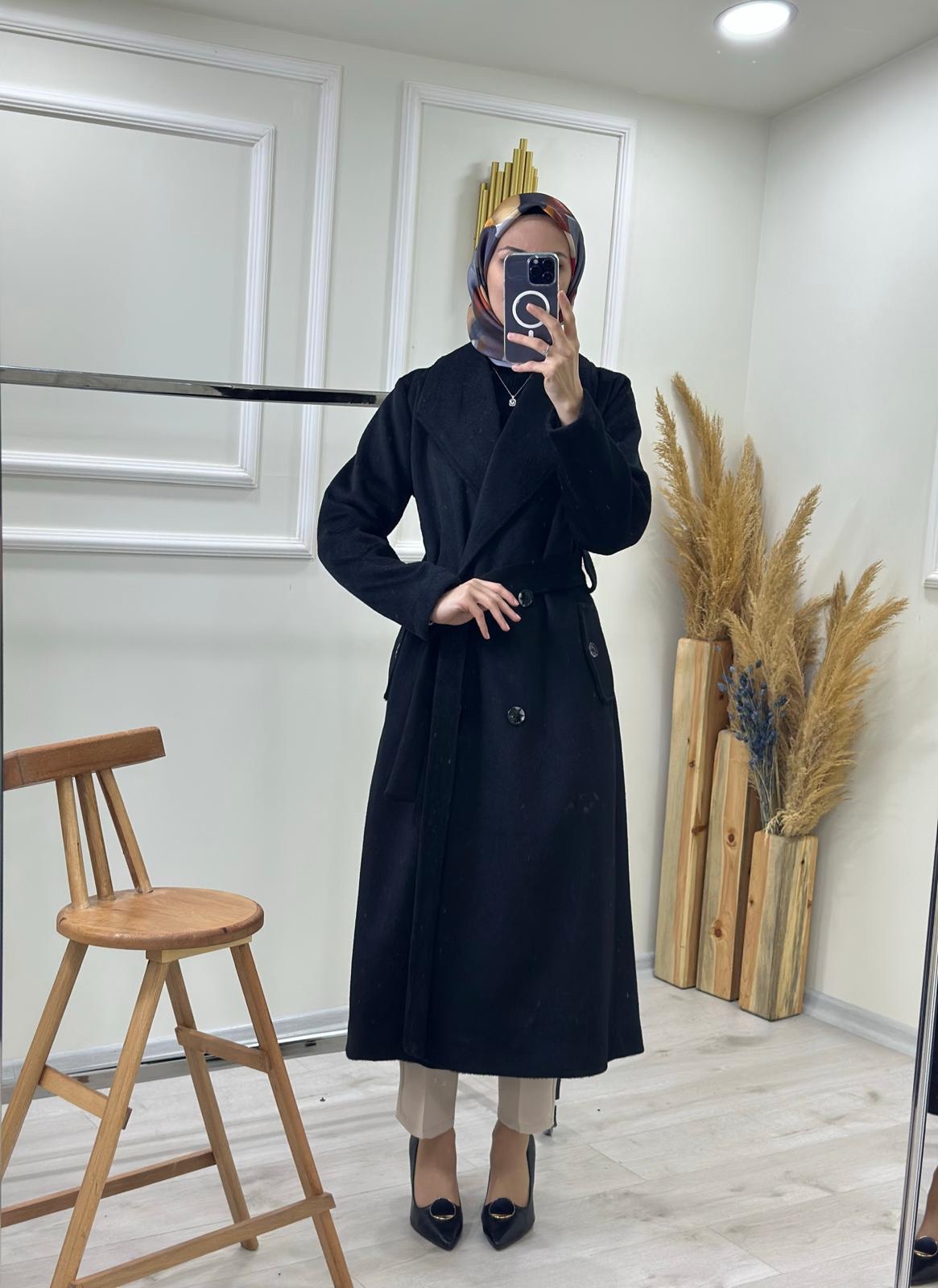 Kuşaklı Düğmeli Kaban